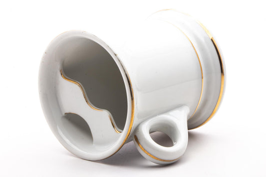Vintage Hand Painted Mustache Saver "The Race Of The Century" Shaving Mug