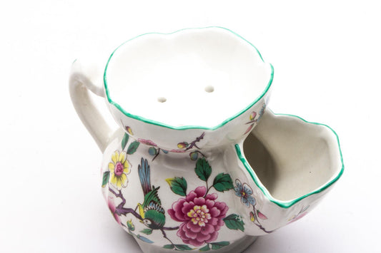Vintage Ceramic Floral Bird Shaving Scuttle