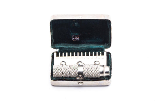 Three Piece Open Comb Travel Safety Razor With Metal Rothstien Case | Original Condition