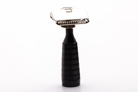 1940's Gem Black Fat Handle Single Edge Safety Razor | Factory Nickel Revamp