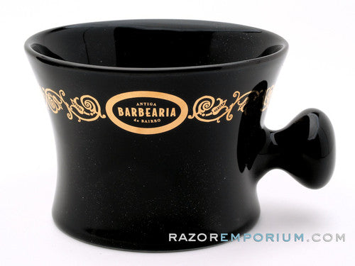 Antiga Barbearia de Bairro Porcelain Shaving Mug Essentials (Black & Gold)