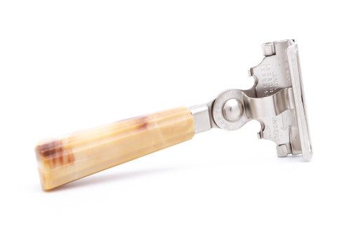 1940-50s Schick Single Edge Injector with Cream Marble Bakelite Handle | Factory Nickel Revamp