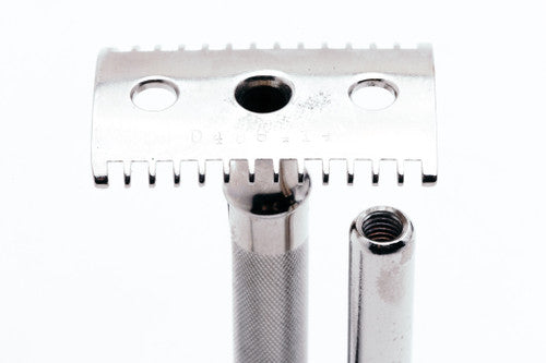 History: The Gillette Old Type was the original razor produced by Gillette Safety Razor Co. Debuted in 1907, the Single Ring featues open comb design with two stabilizer pins that keep the blade straight. These heads are known for their smooth yet aggressive shaves.