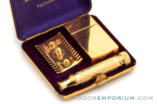 1929 Gillette Gold New Improved Tuckaway Style Travel DE Safety Razor Set