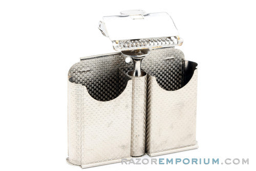 Available is a classic set from Gem! Hailed as the best layout and outlay ever made, the 'Minute Man' Model. In original metal wall hanger, this set delivers both high functionality and vintage flair. Single Edge razors are great shavers and this Minute Man set will definitely help you to keep your SE blades organized in style!