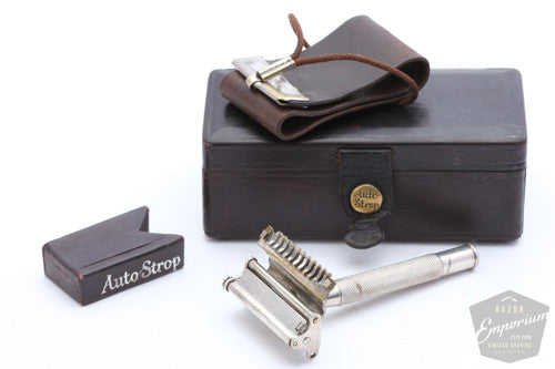 1940's Valet Auto Strop Razor Set in Black Leather Case