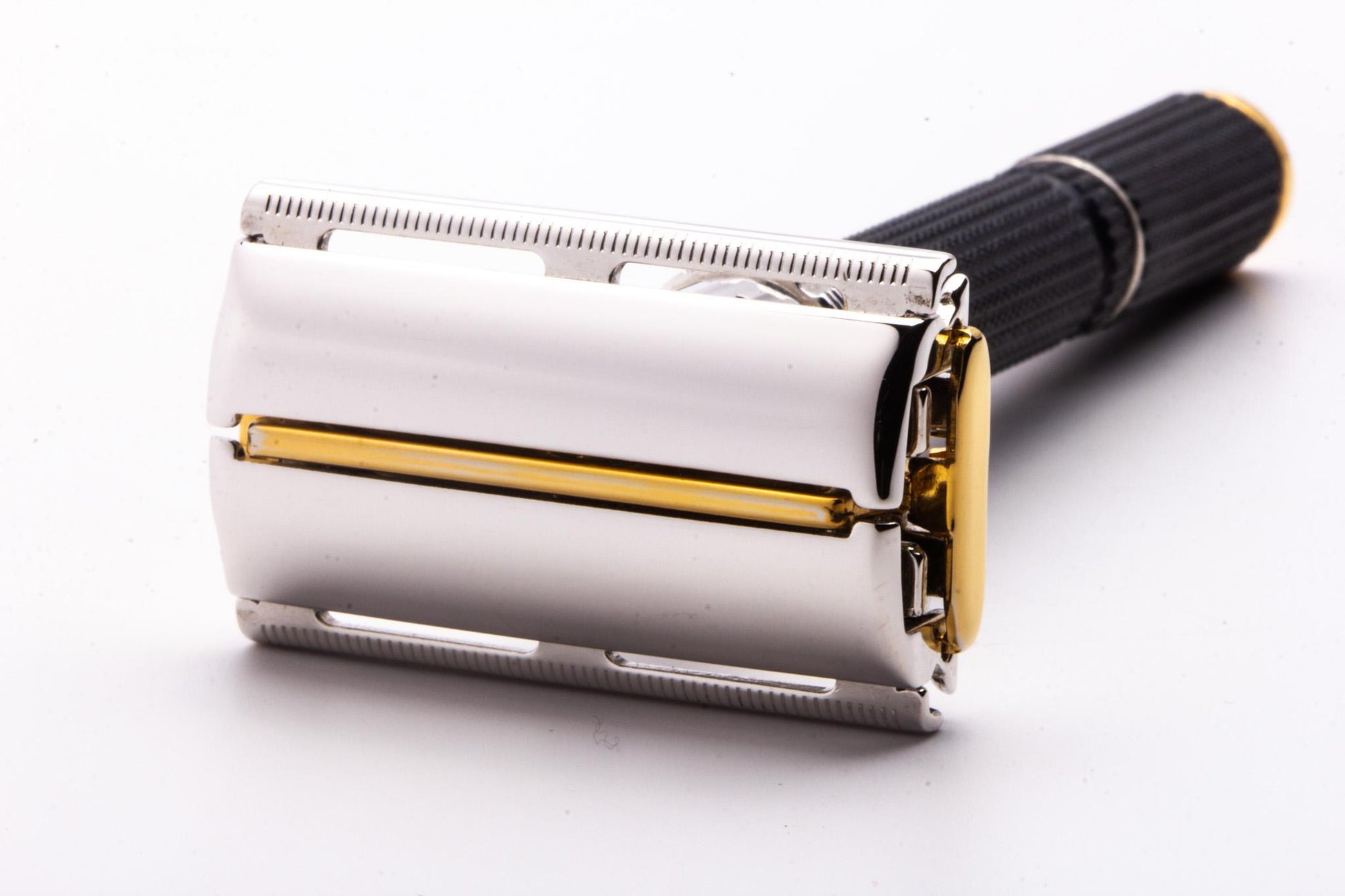 This vintage razor arrives 100% Shave Ready with exquisite new Rhodium and 24K Gold plating.