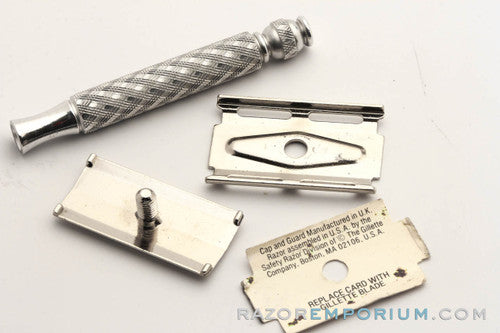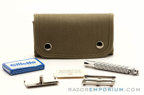 This set is the perfect gift for any guy interested in the 1980's Falkland War era of history! Included is a beautiful 1980's Spiral Tech Made in U.K. Safety Razor featuring a balanced ball-end handle. The razor head has been professionally restored by our team of razor experts. Features original head- stamped out of brass and nickel plated. Handle is solid aluminum.