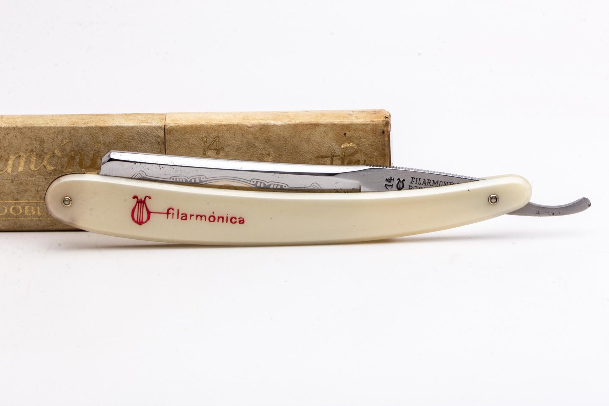 7/8" Filarmonica "Doble Temple" #14 Cream/Red Straight Razor w/ Coffin | Spain