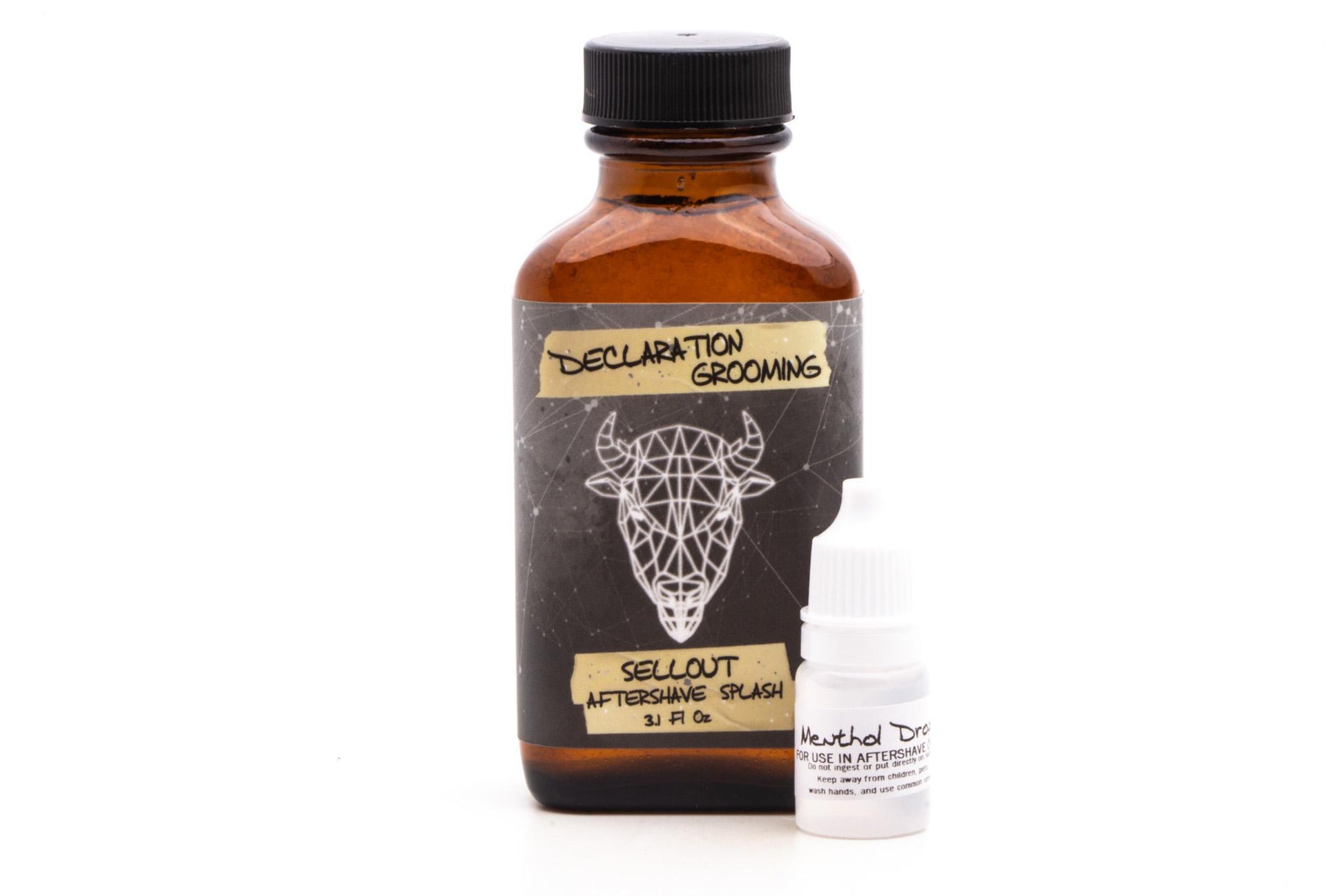 No longer contains menthol in the bottle. A tiny bottle of menthol drops are now included with all splashes. Please do not use these drops for anything other than putting directly into aftershave. Keep away from children and pets. Don't get directly on skin, wash if you do. Use common sense.