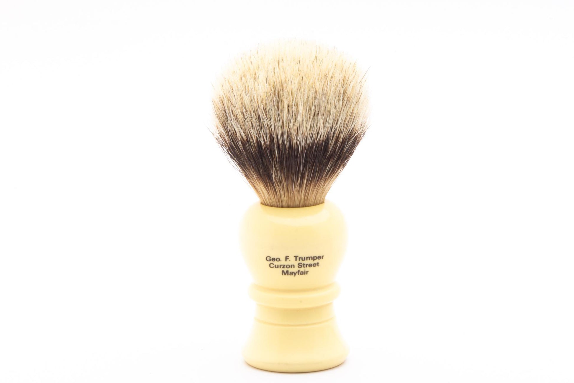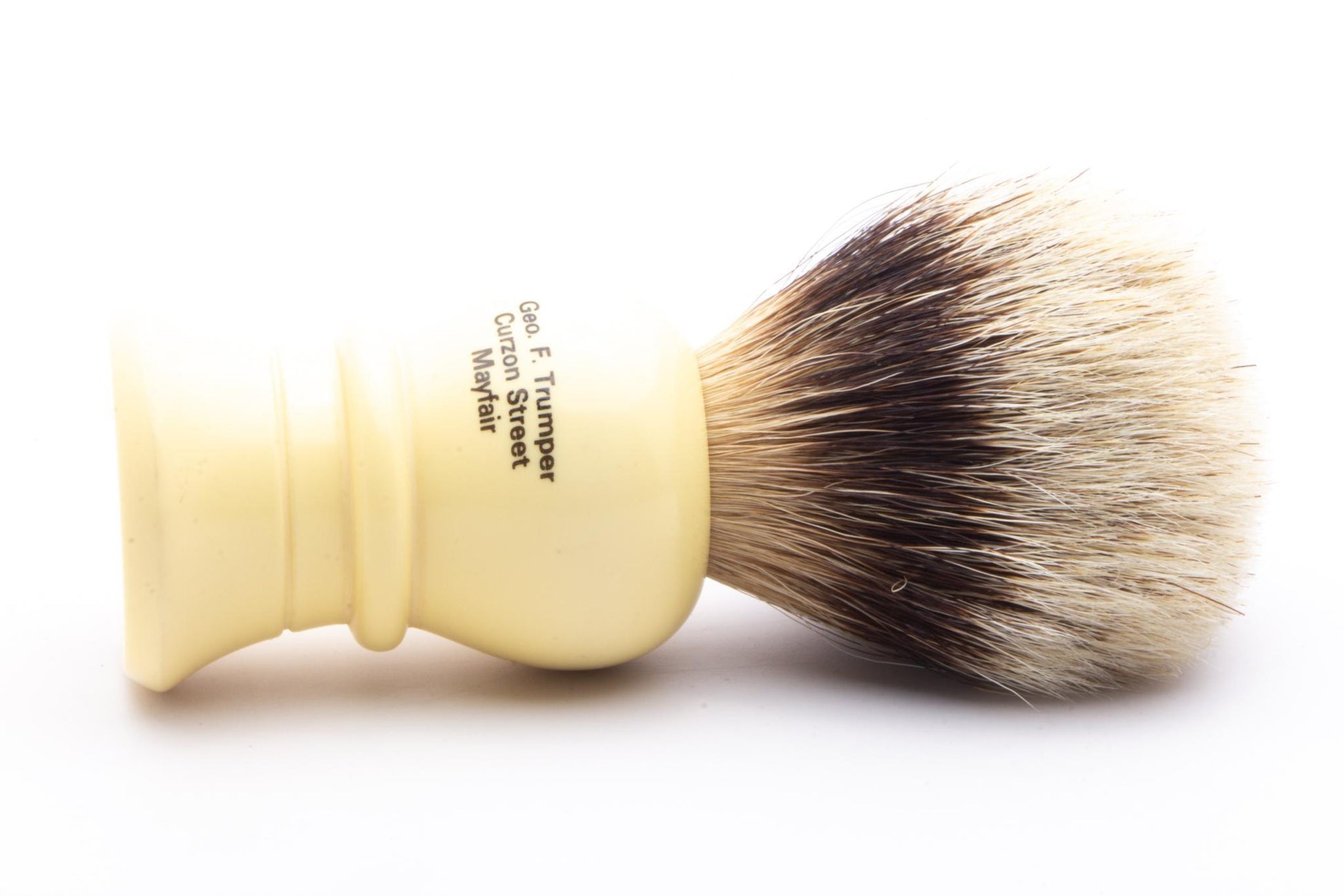 This shave brush is from Geo-F-Trumper, one of the leading traditional brush makers in England. Available for your shaving pleasure sanitized but with no original packaging. This brush does come in a beautiful Kent Box and nice brush stand. This brush combines the stiff backbone of Boar and the soft luxury of badger to pack a big punch!