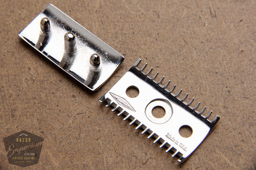 If you are in need of just the razor guard, or always wanted to try out a vintage Old Type Open Comb Gillette, give this razor part a shot. Vintage threading is compatible with nearly every handle made today.