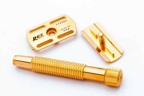 Our DeLuxe finish combines the best of Rex Supply Co. super shave experience and the best of Razor Emporium’s Revamp Service. These stainless steel safety razors are enhanced by high mirror polish and plated with precious metal. Smoothing the machine finish of Marine Grade Stainless Steel increases the shave experience in smoothness and efficiency and adds value to this heirloom razor.