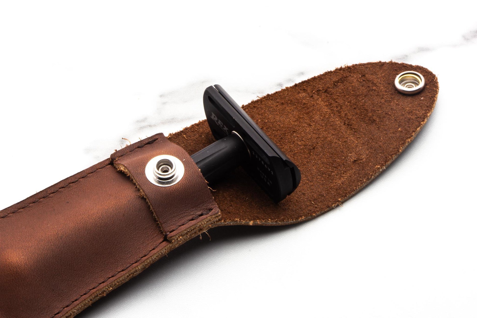 Travel with confidence and classic style. The Rex Supply Co. Page Travel Case is crafted from premium genuine leather and designed to protect your razor with the refined elegance Rex is known for. Available in Black Leather or Brown Leather, this case is a story teller—telling the story of every journey you take.