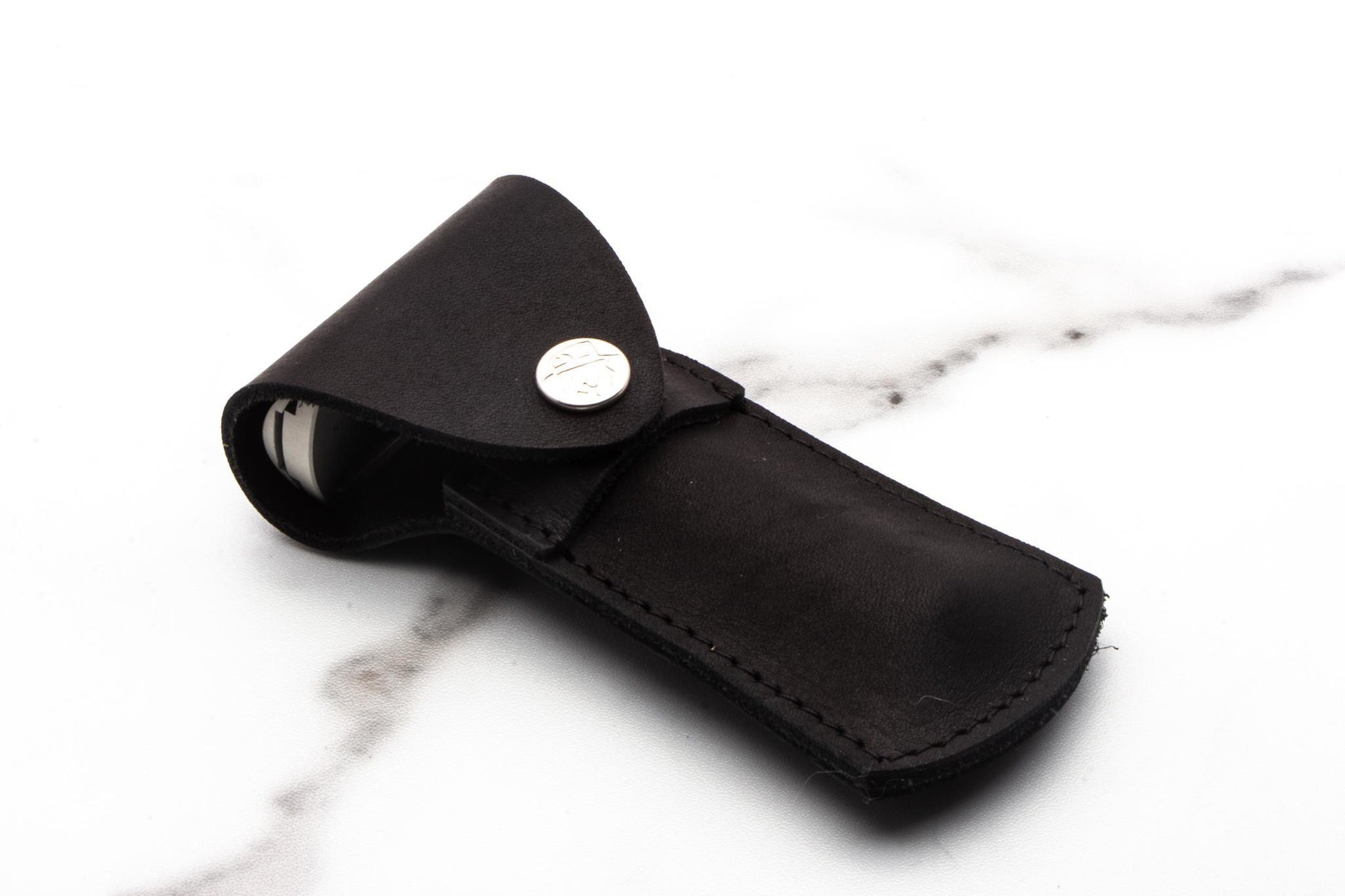 The case features a secure snap closure, proudly stamped with the iconic Rex Supply Co. gentleman in a fedora, complete with a feather tucked into his hat. This distinguished mark isn’t just a logo—it’s a symbol of craftsmanship, heritage, and the timeless spirit of traditional wet shaving.