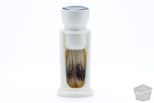 Available is a vintage Stanley Home shaving brush and stand! Careful polishing of this unique handle and cleaning of the luxurious boar knot has brought this brush to a whole new level! The Boar is in excellent shape and has very little splitting. Enjoy the nostalgia of a great shave, with the boar or your father's time. This unique set won't be here long, get it while you can!