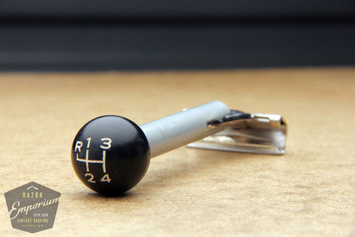 Razor has an awesome black shifter ball end design on the handle. Pick up this automotive and shaving classic today!