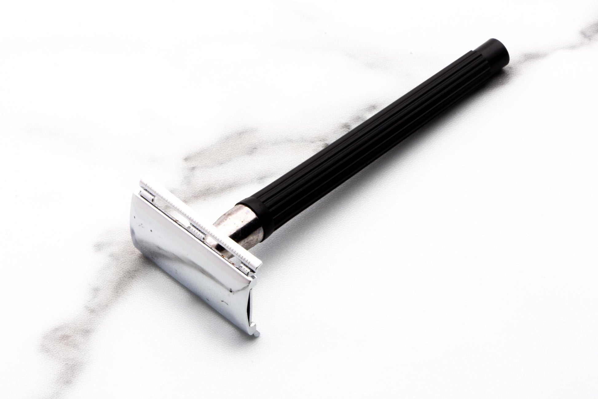The plastic black handle makes this a unique option, reminds me of the Gillette Knack. The knack is a TTO, but the handle on this is very similar. The guard on the razor and the cap are aluminum and chrome plated.