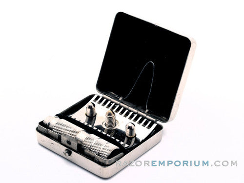 A perfect starter razor - the 3 piece razor provides close and comfortable shaves for days. Perfect working order. Features miniature fine knurled handle for great grip and easy travel.