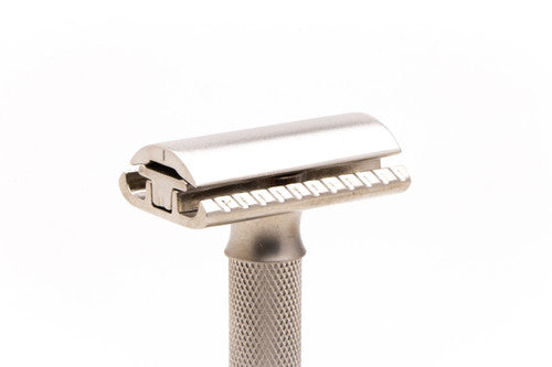 This Parker two piece adjustable DE safety razor combines functionality with a sleek design. The adjustment knob twists smoothly to adjust to your skin and beard, and with added heft can be wielded with exact precision. The functional and beautiful knurling handle design adds control and style. This would be the perfect razor for any shaver wanting to dial in their shaves with a new DE razor!
